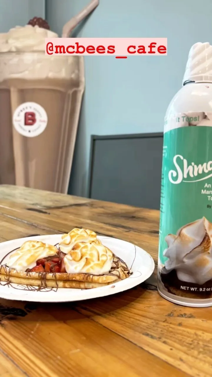 Sh’mallow, the first aerosol marshmallow that sprays, tops, and toasts on any dessert, beverage, or whatever your imagination craves!
